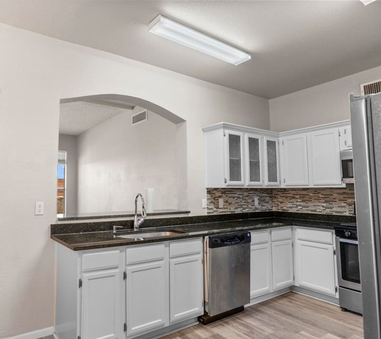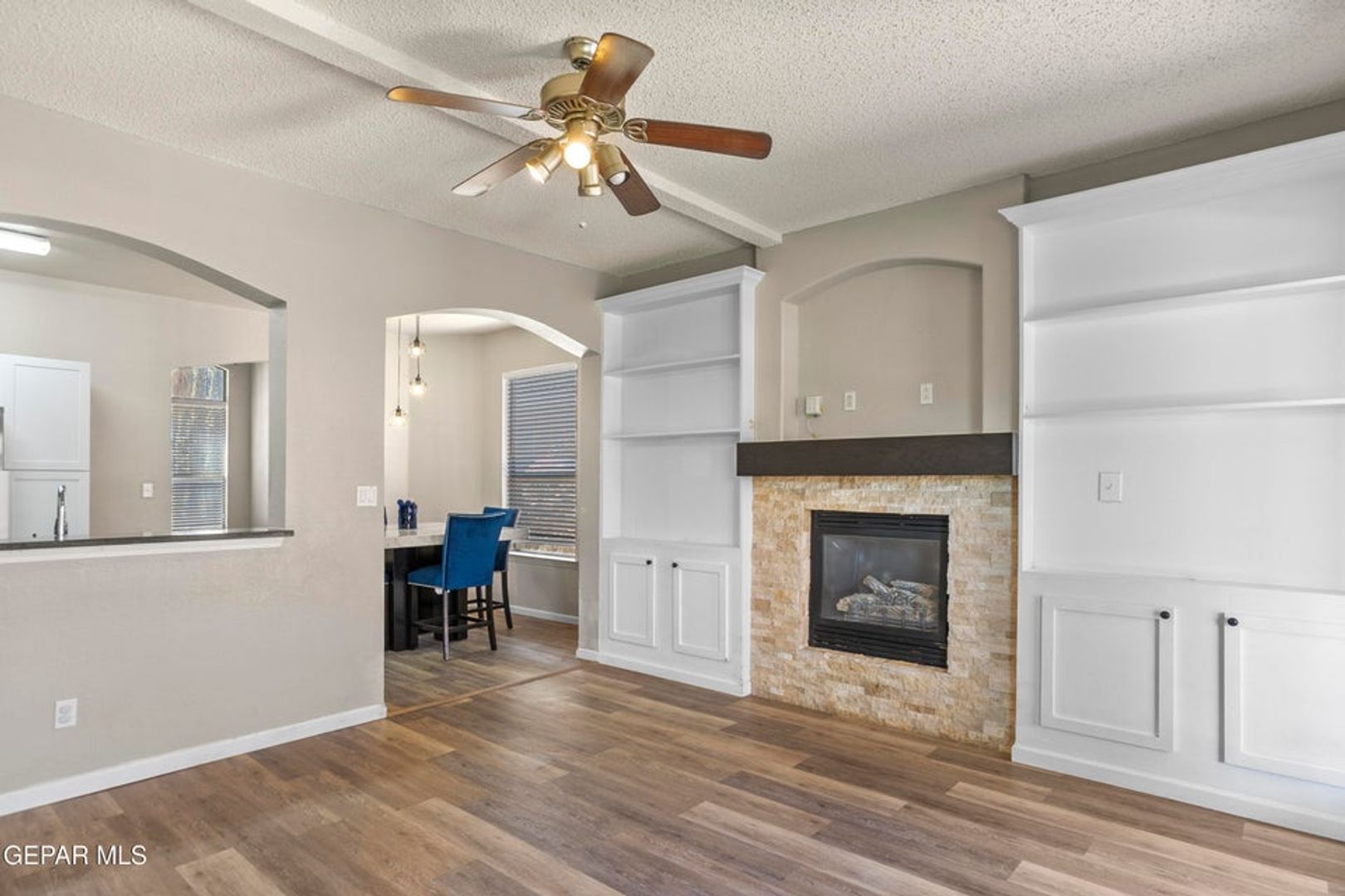 Immaculate two story Eastside home with refrigerated air located in quiet neighborhood.  Home features living area, den, dining area, loft, four bedrooms, two full bathrooms, three quarter bathroom & two car garage.  Among the many amenities included are ceiling fans, fireplace, granite counter tops, breakfast bar, full stainless steel appliance package, pantry, laundry room, garage door opener, garage door opener remotes, back covered patio & much more.  Front & back yards are professionally landscaped.  Home is located close to parks, schools, shopping, freeway access & Fort Bliss.  Come view this home today as it is ready for immediate move in!